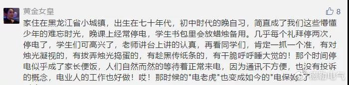 過去,電力吃緊停電帶來的小“窘迫”卻意外制造了生活的小美好如今,電力充裕電力的存在像空氣一樣變得平常停電幾分鐘帶來的無限“焦慮”這何嘗不是電力發展的反差和對比呢?那些年,經歷過的停電時光哪些是你的回憶?